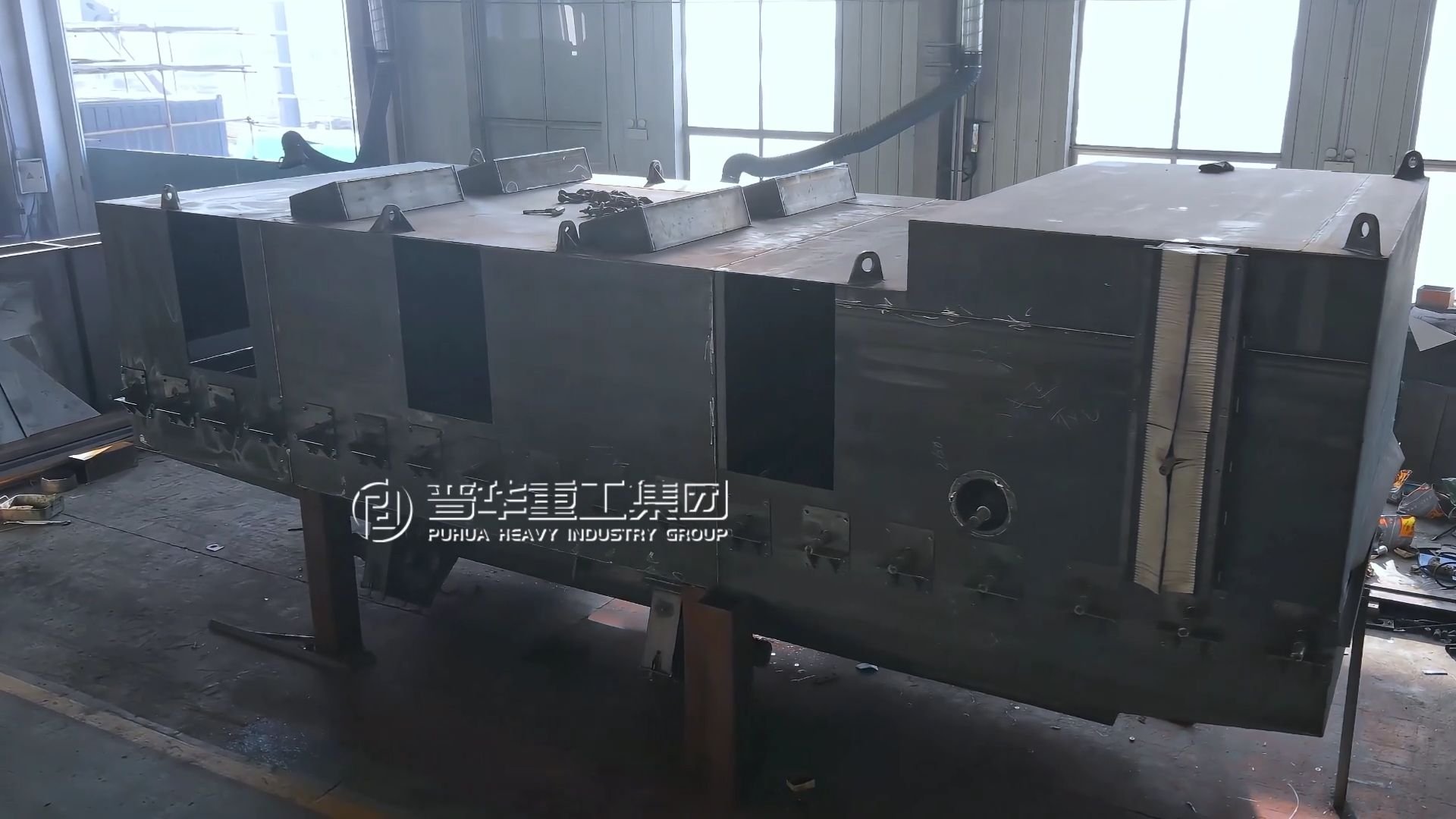 На производственной базе Qingdao Puhua Heavy Industrial Machinery завершена сварка основной камеры тяжелой дробеструйной машины роликового конвейера, изготовленной на заказ для конкретной отрасли. Это знаменует собой критический переход от универсальной конструкции к глубокой кастомизации под конкретные сценарии. В отличие от стандартного оборудования, габариты, внутренняя усиленная конструкция, компоновка дробеструйных турбин и система рециркуляции абразива этой основной камеры были полностью переоптимизированы. Ее конструкция берет начало из прямого взаимодействия с такими вызовами, как сверхдлина и сверхтолщина листов для башен ветрогенераторов или экстремальные требования к чистоте поверхности и шероховатости для морских сталей. Например, длина камеры подобрана под типовую длину листов заказчика, обеспечивая полную очистку за один проход и исключая переделку; углы внутреннего метания смоделированы и заданы на основе характеристик деформации листов конкретной толщины, максимизируя эффективность удаления окалины/ржавчины при контроле тепловложения и воздействия напряжений. Эта философия проектирования, укорененная в прикладных потребностях, гарантирует, что поставляемое оборудование будет бесшовно интегрировано в производственную линию и технологические нормы заказчика, совершая скачок от «выполнения функции» к «повышению общей производственной эффективности и качества».